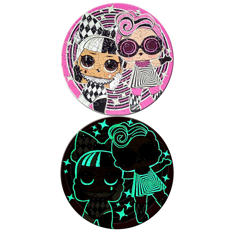 Неоновые пазлы L.O.L. Surprise - это 6 круглых пазлов светящихся в темноте, упакованных в пластиковые шары-сюрпризы. Какая картинка внутри ребенок узнает лишь открыв упаковку. Каждый пазл состоит из 77 элементов. Каждая деталь имеет уникальную форму. Ребенка приведет в восторг волшебный эффект – в темноте, собранная картинка начнет светиться, благодаря специальной краске. Комплектация: Круглый Пазл 77 светящихся элементов, 21*21 см. Упаковка пластиковый шар с карабином. В коллекции 6 разных дизайнов.