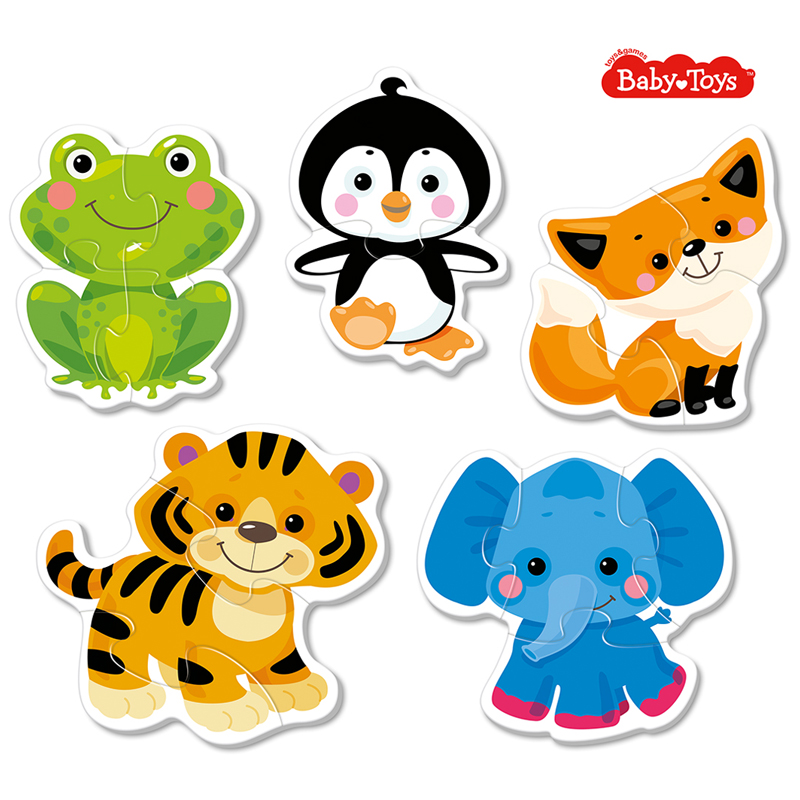 Контурные фигурные пазлы «Животные» от Baby Toys. 3+. Состав набора: пазл-слоник из 4-х частей – 1 шт. (размер в собранном виде – 14 х 15 см); пазл-лисёнок из 3-х частей – 1 шт. (размер в собранном виде – 14 х 12 см); пазл-пингвинёнок из 2-х частей – 1 шт. (размер в собранном виде – 14 х 10 см); пазл-лягушонок из 4-х частей – 1 шт. (размер в собранном виде – 13 х 11 см); пазл-тигрёнок из 3-х частей – 1 шт. (размер в собранном виде – 15 х 16 см). Всего в наборе 5 фигурных пазлов на уникальном пазловом замке. Материал: плотный многослойный картон толщиной 2 мм с односторонней ламинацией с лицевой стороны. Развивает интеллект, логику, мелкую моторику и речь.