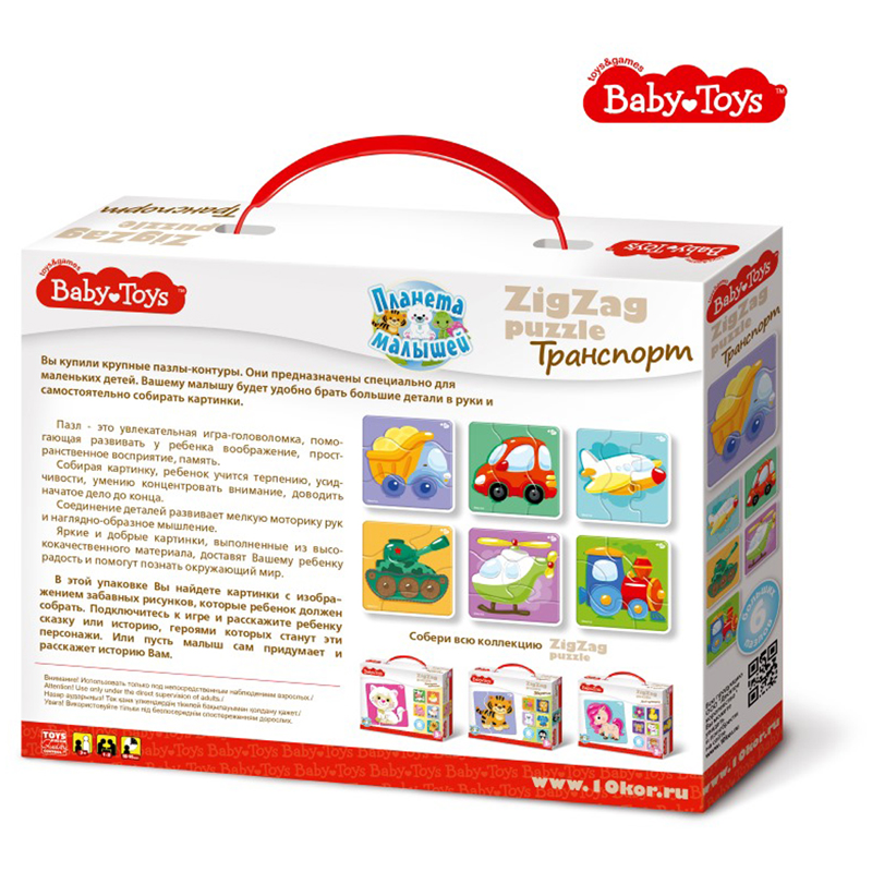 Тройные зигзаг пазлы «Транспорт» выпускаются «Десятым королевством» под официально зарегистрированным товарным знаком «Baby Toys».
