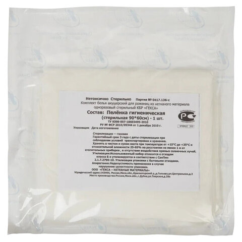 Пеленка впитывающая одноразовая стерильная 60х90 см, ГЕКСА