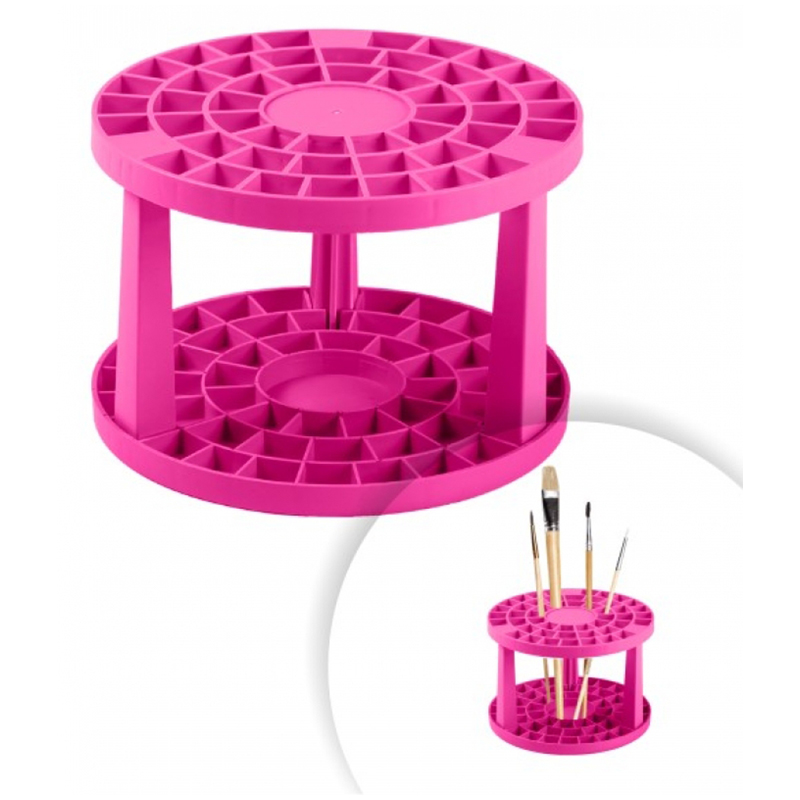 Подставка очень удобна для размещения кистей и других инструментов под рукой во время творческого процесса. Позволяет компактно разместить большое количество различных кистей одновременно до 50шт. Сборно-разборная конструкция удобна при транспортировке и хранении. Лёгкий и прочный корпус. Размеры изделия: диаметр 145мм, высота 100мм. Упаковка: пакет с подвесом, цветной вкладыш.