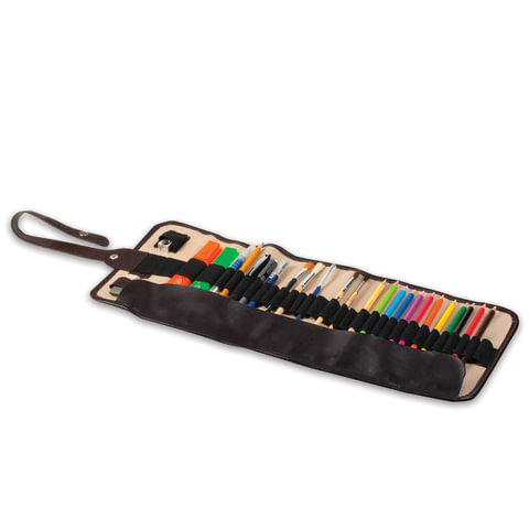 Стильный и удобный пенал для художника. Он оснащен 27 держателями для карандашей и 4 более широкими держателями для художественных принадлежностей. Размер в развернутом виде - 500х200 мм.