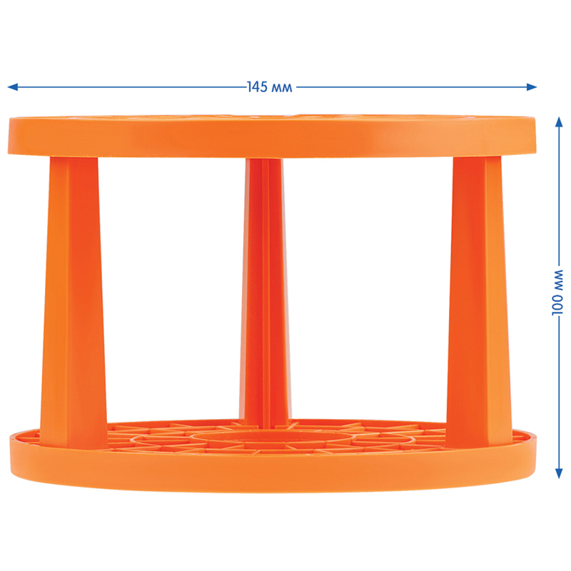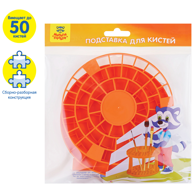Подставка очень удобна для размещения кистей и других инструментов под рукой во время творческого процесса. Позволяет компактно разместить большое количество различных кистей одновременно до 50шт. Сборно-разборная конструкция удобна при транспортировке и хранении. Лёгкий и прочный корпус. Размеры изделия: диаметр 145мм, высота 100мм. Упаковка: пакет с подвесом.