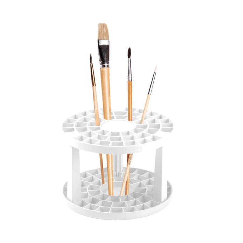 Подставка очень удобна для размещения кистей и других инструментов под рукой во время творческого процесса. Позволяет компактно разместить большое количество различных кистей одновременно до 50шт. Сборно-разборная конструкция удобна при транспортировке и хранении. Лёгкий и прочный корпус. Размеры изделия: диаметр 145мм, высота 100мм. Упаковка: пакет с подвесом, цветной вкладыш.