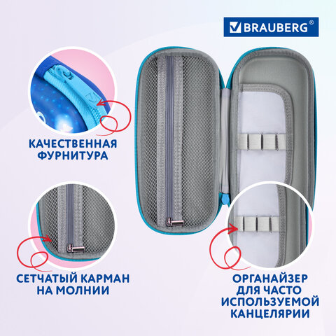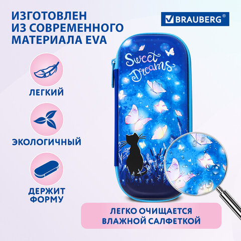 Пенал каркасный BRAUBERG выполнен из EVA материала с эффектом объемного изображения. Вмещает до 50 канцелярских предметов стандартного размера.