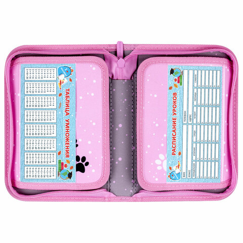 Пенал имеет стандартный размер 21х14 см, что позволяет легко размещать его в ранце или рюкзаке, сумке. Хорошая наполняемость пенала дает возможность держать все необходимые для уроков канцтовары в порядке, в одном месте. Внутри пенала имеются вкладыши для расписания уроков и с таблицей умножения.
