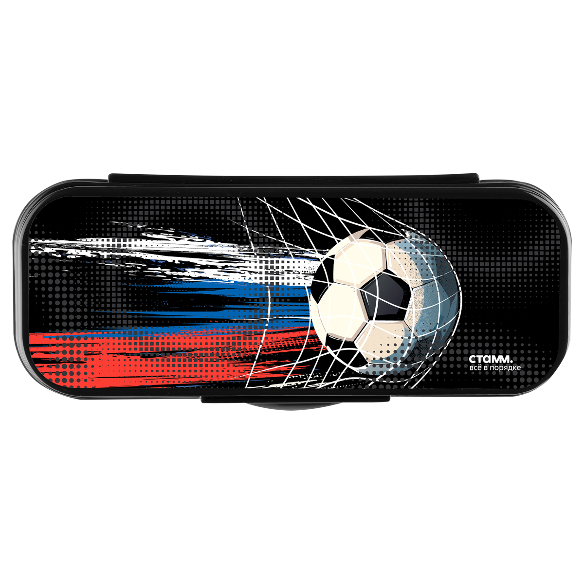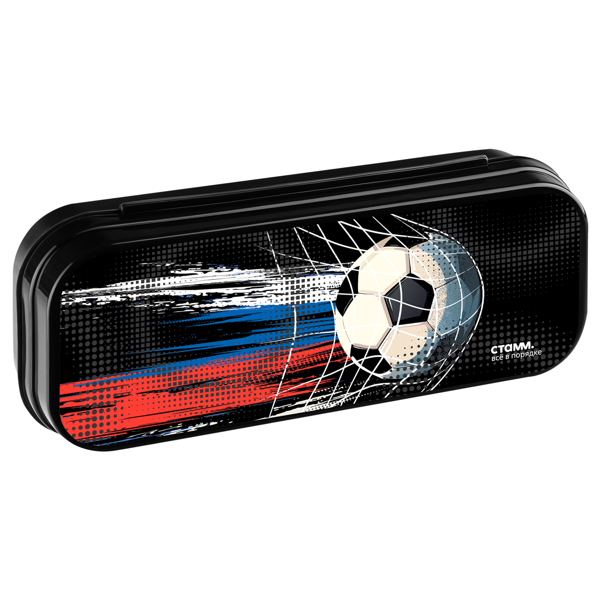 Пенал-футляр «СТАММ» «Мяч» поможет стильно и аккуратно хранить канцелярские принадлежности. Лёгкий и прочный пенал прямоугольной формы оборудован одним отделением повышенной вместимости. Размер изделия – 215*90*43 мм. Он изготовлен из качественного полипропилена и имеет надёжный и лёгкий в обращении замок. Изделие цвета чёрный металлик представлено в ярком и стильном дизайне.<br/>• Размер: 215*90*43 мм;<br/>• Форма: прямоугольная;<br/>• Материал: полипропилен;<br/>• Цвет: черный.