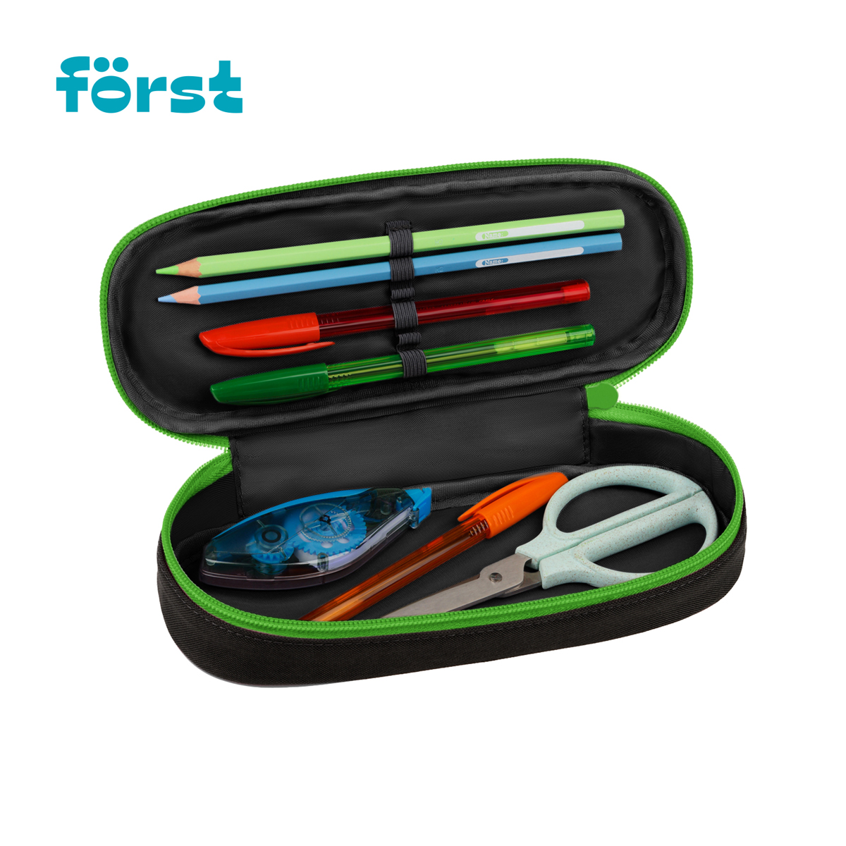 Корпусный пенал-футляр Först "Play the game" с одним отделением помогает школьнику хранить канцелярские принадлежности в одном месте. Изделие размером 220*90*45 мм не занимает много места в рюкзаке. За счёт креплений-резиночек для канцтоваров внутри пенала легко поддерживать порядок. Благодаря крупному бегунку ребёнку удобно открывать пенал на молнии. Материал лицевой поверхности и подкладки — полиэстер. Поставляется без наполнения.