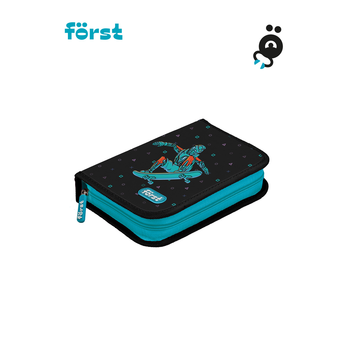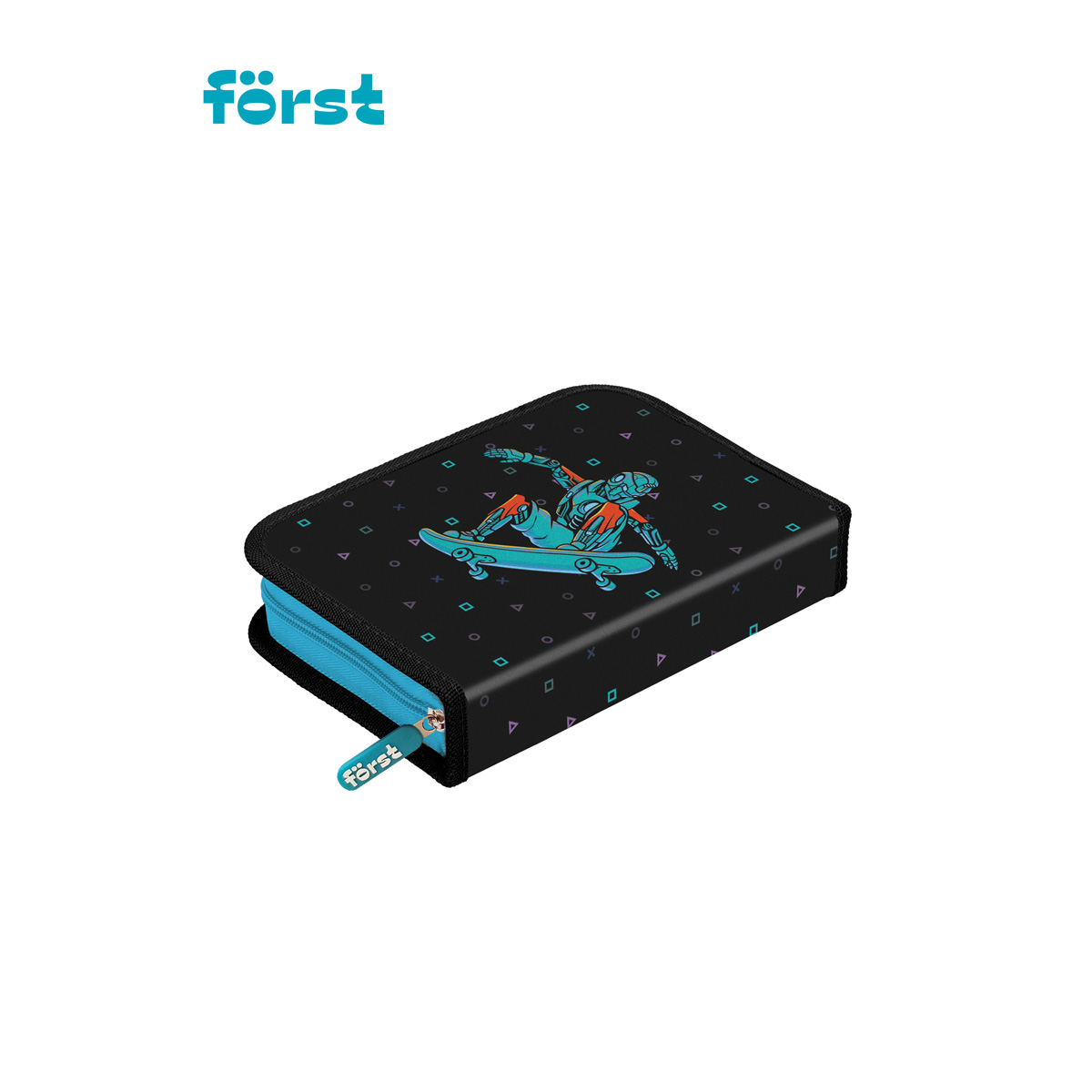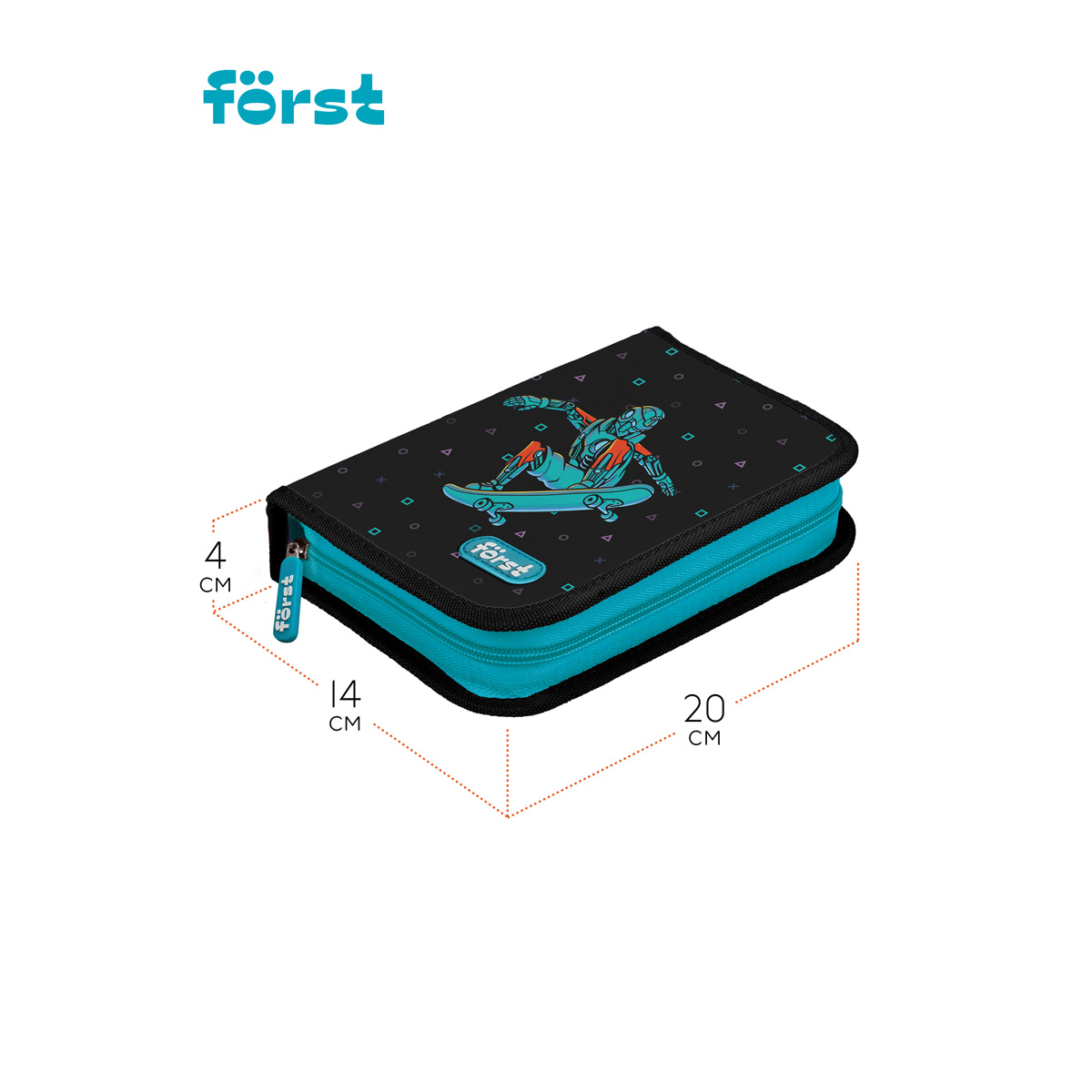Каркасный пенал Först серии Neo skater помогает школьнику хранить канцелярские принадлежности в одном месте. Изделие размером 200*140*40 мм не занимает много места в рюкзаке. В одно отделение помещается 25 предметов. За счёт креплений-резиночек для канцтоваров внутри пенала легко поддерживать порядок. Одна откидная планка увеличивает вместимость изделия и позволяет всегда держать расписание уроков перед глазами. Благодаря крупному резиновому бегунку ребёнку удобно открывать пенал на молнии. <br/>Лицевая поверхность сделана из износостойкого полиэстера с принтом, а внутренняя – из текстурного ПВХ. Дизайн с роботом-скейтером понравится мальчику. Пенал упакован в индивидуальный пакет с ярким тэгом. Поставляется без наполнения.<br/>• Внешний материал: полиэстер;<br/>• Внутренний материал: текстурный ПВХ;<br/>• Количество отделений: 1;<br/>• Откидная планка: 1;<br/>• Размер: 200*140*40 мм.