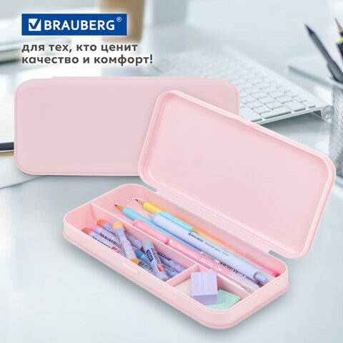 Пластиковый пенал BRAUBERG предназначен для школьников и художников. Вместительный, прочный, с удобным разделением для организации принадлежностей. Набор ярких наклеек в подарок!