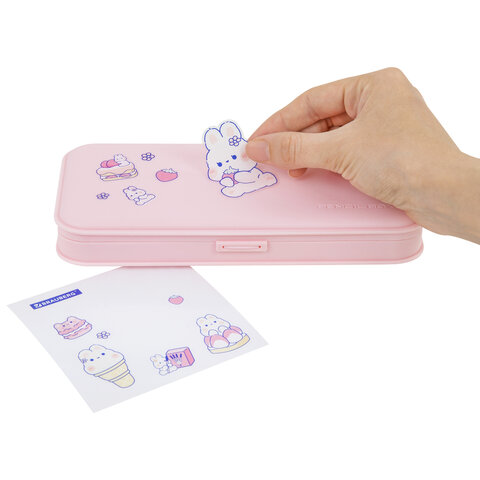 В подарок идет набор ярких наклеек, которые помогут украсить пенал. Наклейки наносятся легко и надежно держатся на поверхности.