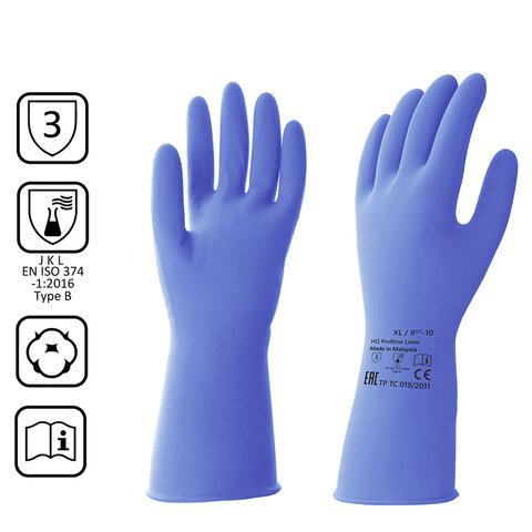 Перчатки латексные КЩС, сверхпрочные, плотные, хлопковое напыление, размер 9,5-10 XL, очень большой, синие, HQ Profiline, 74736