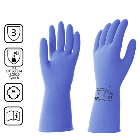 Перчатки латексные КЩС, сверхпрочные, плотные, хлопковое напыление, размер 7 S, малый, синие, HQ Profiline, 74733