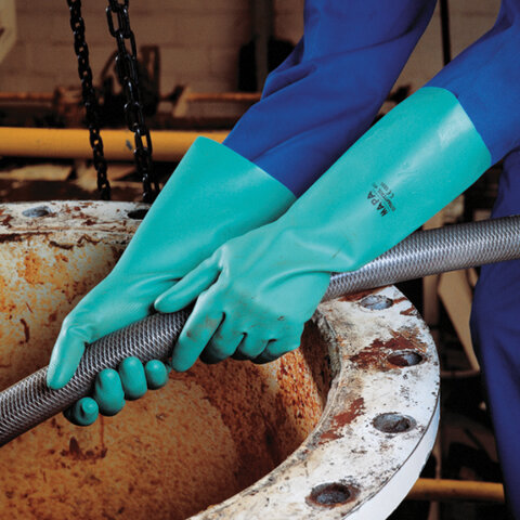 Химически стойкие перчатки Мара из нитрила, сверхдолгая химическая защита и защита от механических воздействий. Увеличенный срок службы благодаря превосходной механической прочности (устойчивость к износам и проколам).