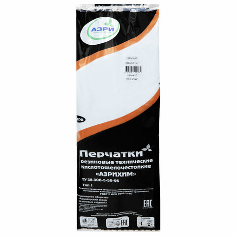 Перчатки резиновые технические кислотощелочестойкие КЩС Тип-1, К20/Щ20, размер 3 (очень большой), АЗРИ