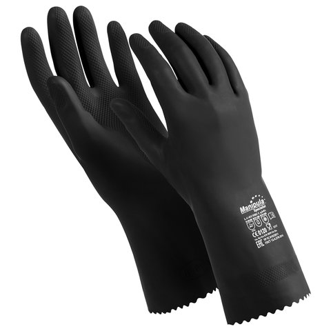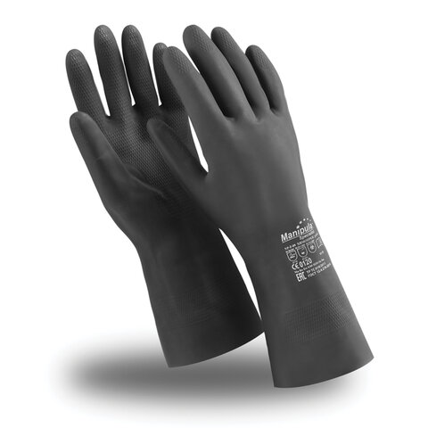 Перчатки латексные MANIPULA "КЩС-1", двухслойные, размер 8 (M), черные, L-U-03/CG-942