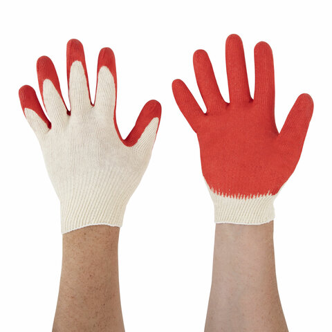 Перчатки трикотажные с одинарным латексным обливом ладони. Обладают высокой прочностью, предназначены для защиты от повреждений острыми углами, порезов арматурой, стеклом, не промокают при работе с влажными материалами (идеальны для укладка плитки).
