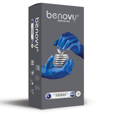 Перчатки латексные смотровые 25 пар (50 шт.), размер L (большой), синие, BENOVY High Risk, -