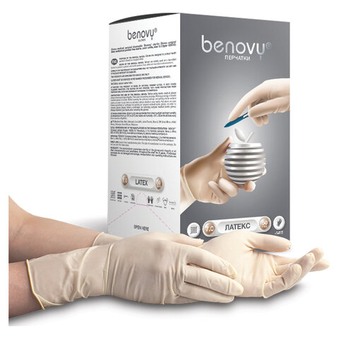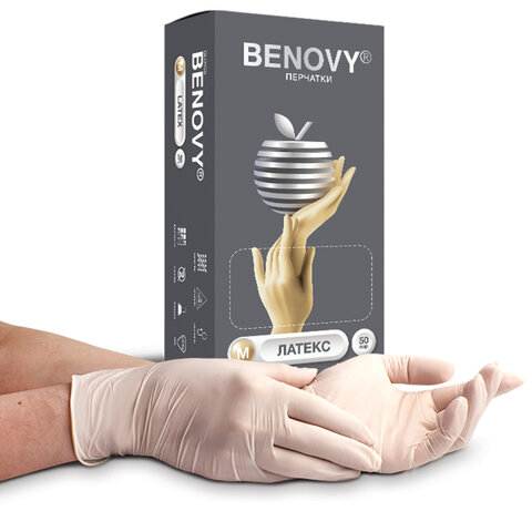 Перчатки латексные смотровые 50 пар (100 шт.), размер М (средний), BENOVY Latex Chlorinated, 21529