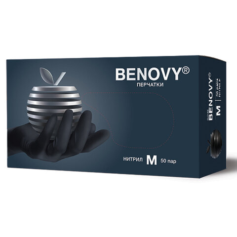 Перчатки нитриловые смотровые 50 пар (100 шт.), размер M (средний), черные, BENOVY Nitrile MultiColor