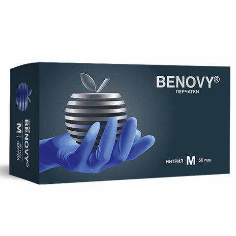 Перчатки нитриловые смотровые 50 пар (100 шт.), размер L (большой), BENOVY Nitrile Chlorinated