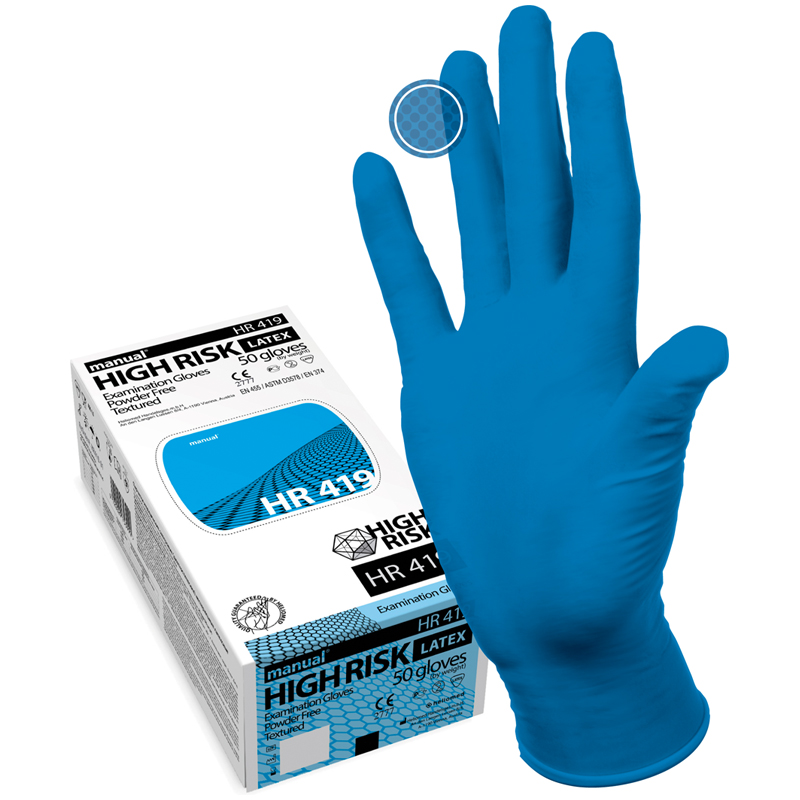 Перчатки латексные медицинские Manual "High Risk HR419", L, 50шт., неопудренные, особо прочные, картонная коробка