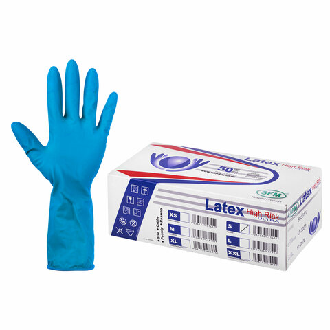 Перчатки латексные смотровые, особо прочные, SFM HIGH RISK COMFORT, 25 пар (50 штук), размер S (малый)