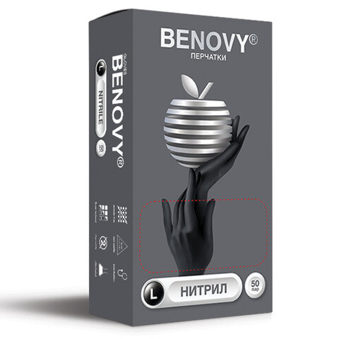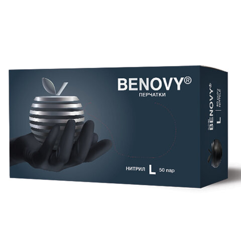 Перчатки нитриловые смотровые 50 пар (100 шт.), размер L (большой), черные, BENOVY Nitrile MultiColor