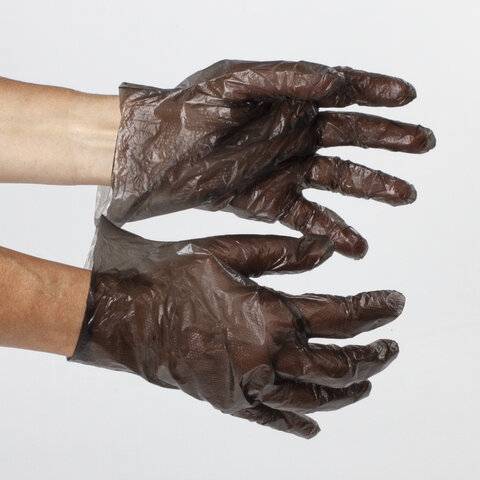 Одноразовые перчатки большого размера М выполнены из полиэтилена плотностью 8 микрон и имеют гладкий срез манжеты. Устойчивы к химическим средствам. Сохраняют тактильные ощущения. Отсутствие технической пудры на перчатках максимально уменьшает риск загрязнения как рук, так и продукции. Часто используются в кулинарии, в пищевом производстве. Преимущество перед прозрачными перчатками, это возможность своевременно увидеть повреждения на перчатках. В случае нарушения целостности перчаток при приготовления мучных изделий, вы с легкостью обнаружите темный кусочек перчатки нежели если перчатка будет из прозрачного полиэтилена.