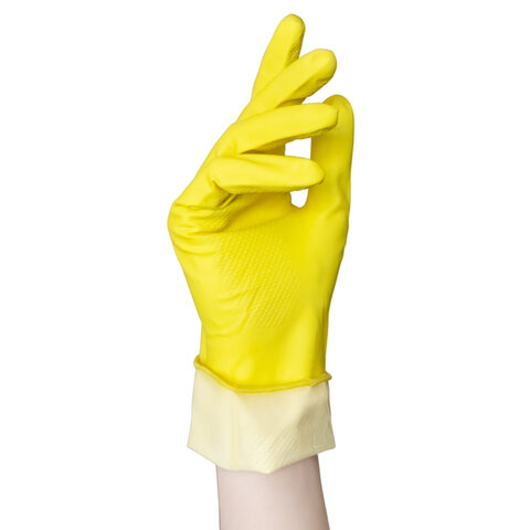 Выполнены из латекса желтого цвета с хлопковым внутренним напылением. Обладают рельефной поверхностью. Размер - L.