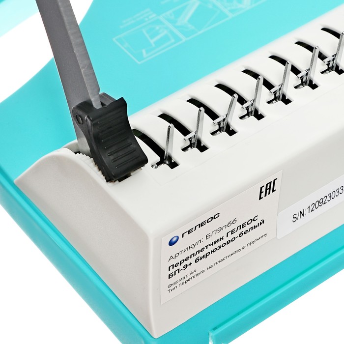 Брошюровщик ПЛАСТИК пружина, перф 13л, перепл 500л, Гелеос "БП-13+", бир-бел