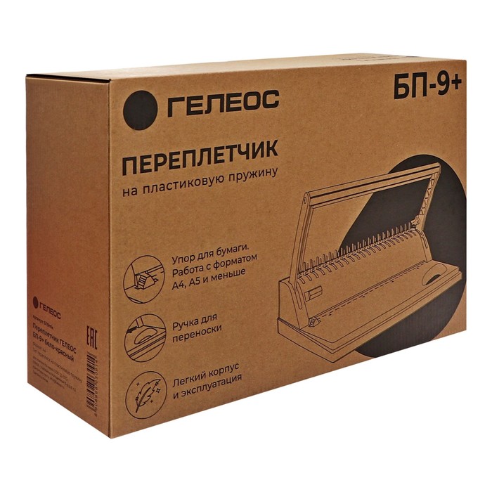 Брошюровщик для пластиковой пружины, перфорация 9 листов, переплетения 170 листов, "Гелеос" БП-9+, бело-красный