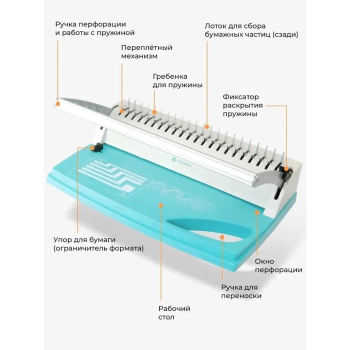 Брошюровщик для пластиковой пружины Гелеос, перфорация до 22 листов, переплетение до 500 листов