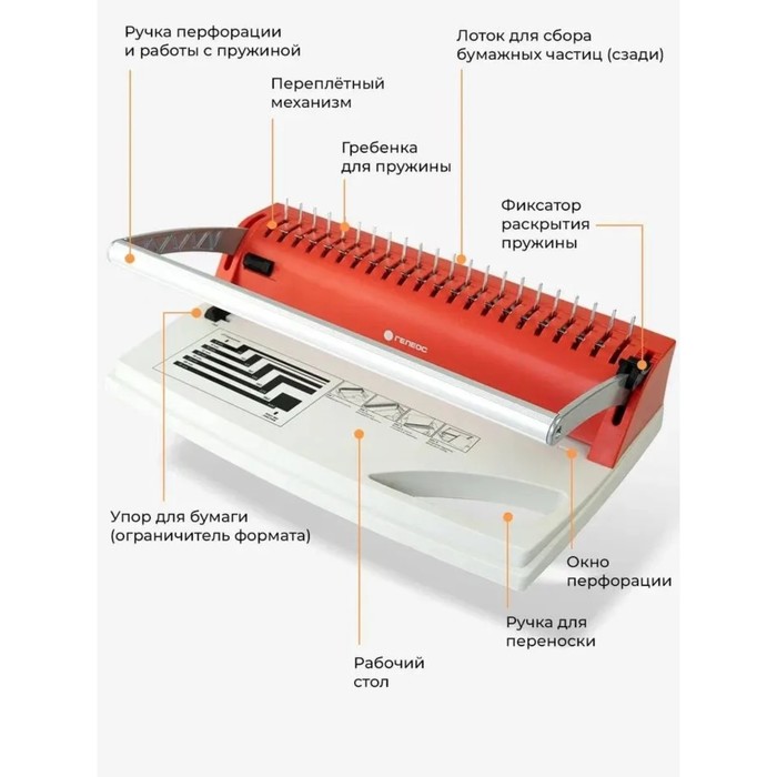 Брошюровщик для пластиковой пружины Гелеос, перфорация до 22 листов, переплетение до 500 листов