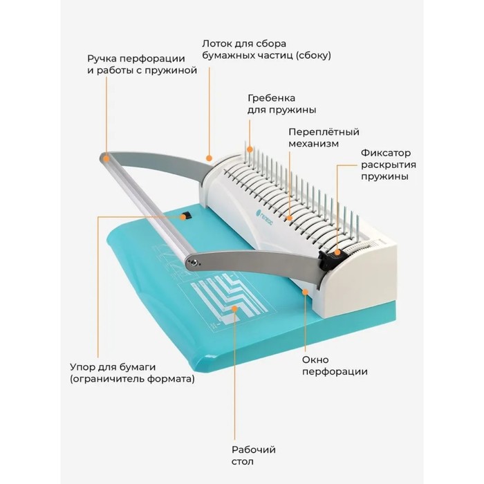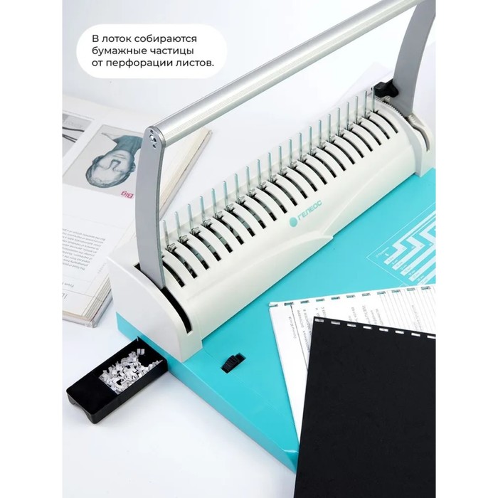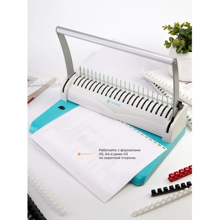 Брошюровщик для пластиковой пружины Гелеос, перфорация до 22 листов, переплетение до 500 листов