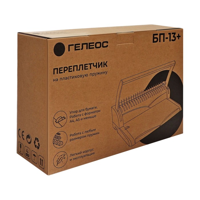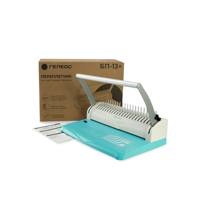 Брошюровщик для пластиковой пружины, перфорация до 13 листов, переплетение до 500 листов, Гелеос "БП-13"