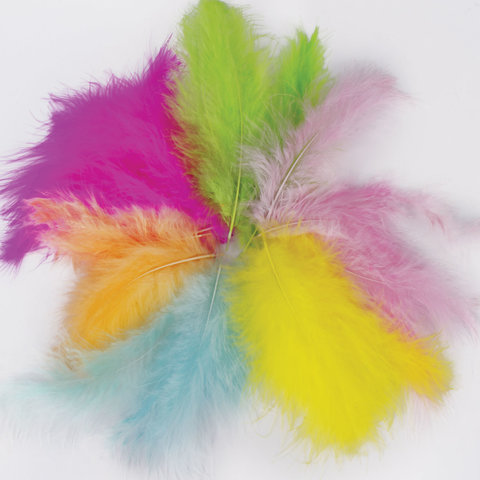 Натуральные перья проходят многоэтапную обработку и совершенно безопасны при использовании. Выкрашены в пастельные цвета. Практически не имеют пуха. Каждое перо имеет плотную перьевую основу. Размер - 10-12 см. Поставляются в пакете с европодвесом в количестве 24 штук.