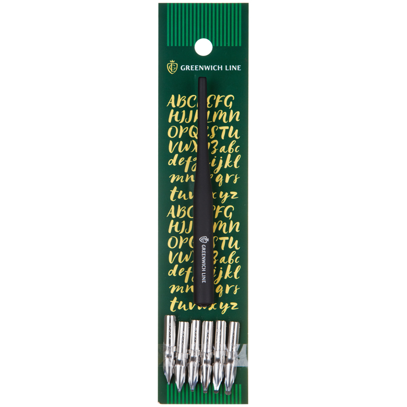 Перья каллиграфические Greenwich Line, круглые, 6шт. с держателем, в пакете