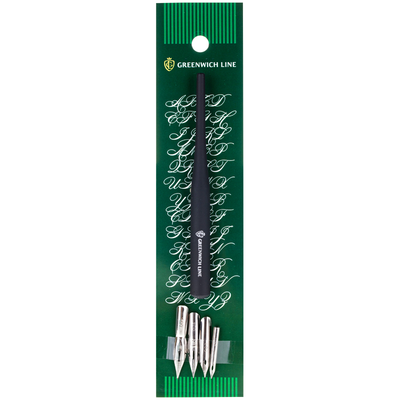 Перья каллиграфические Greenwich Line, остроконечные, 4шт. с держателем, в пакете
