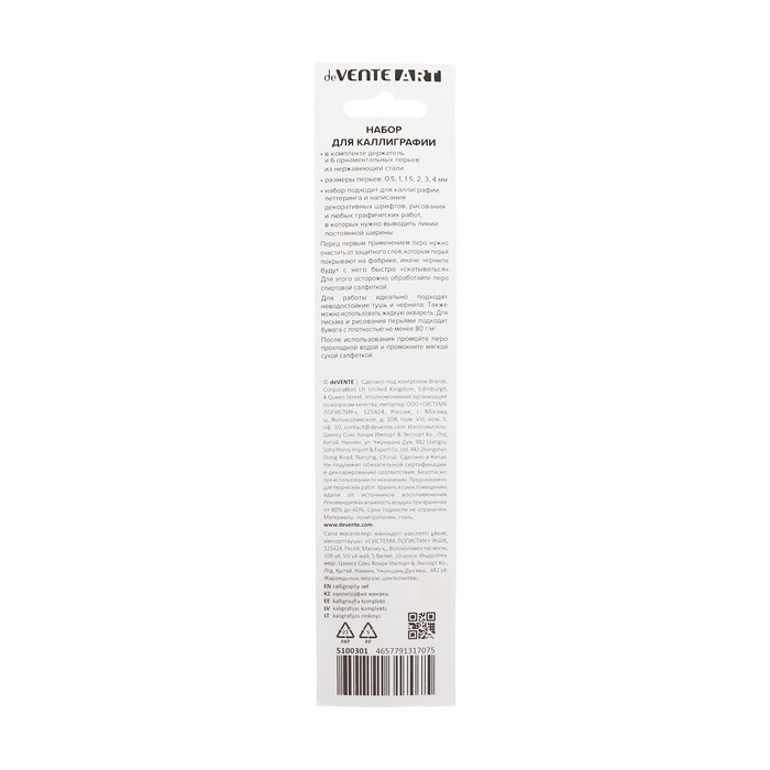 Набор перьев плакатных плоских (широкие) 5 штук: №: P4,8,10,12,15, + держатель, deVENTE. Art 5100300