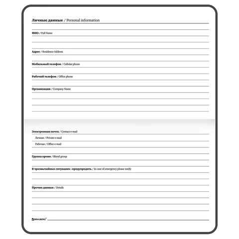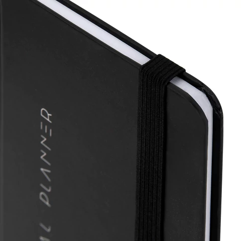 Внутренний блок содержит 64 листа офсетной бумаги белого цвета плотностью 60 г/м2. Обложка 7БЦ (твердый переплет с матовой пленкой) обеспечивает долгий срок службы. Снабжен резинкой-фиксатором, благодаря чему планинг не откроется в сумке или портфеле. Отличительная особенность – это поля, на которых можно проставить даты. Размер изделия – 171х93 мм.