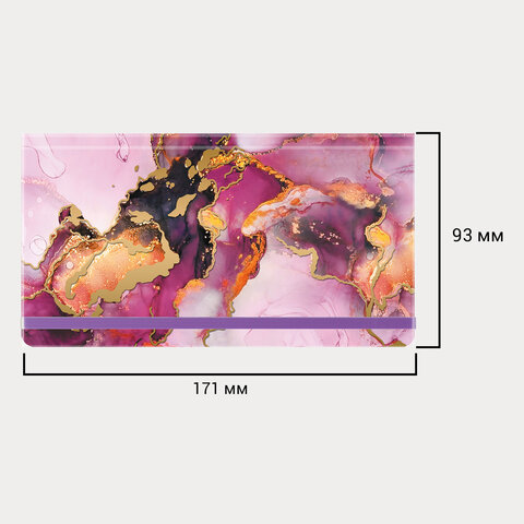 Внутренний блок содержит 64 листа офсетной бумаги белого цвета плотностью 60 г/м2. Обложка 7БЦ (твердый переплет с матовой пленкой) обеспечивает долгий срок службы. Снабжен резинкой-фиксатором, благодаря чему планинг-еженедельник не откроется в сумке или портфеле. Отличительная особенность - это поля, где можно проставить даты. Размер изделия - 171х93 мм.