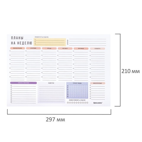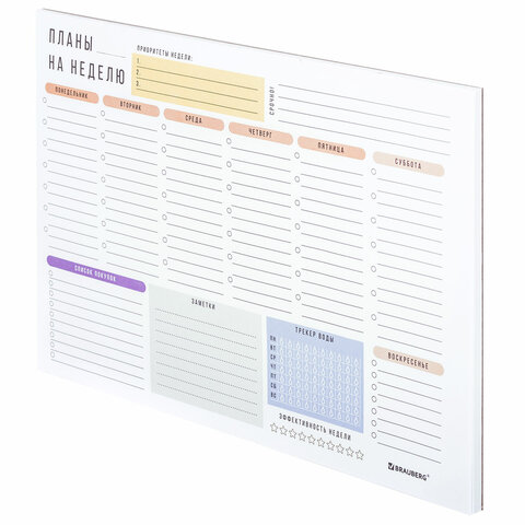Стильный и универсальный блокнот-планер BRAUBERG с отрывными листами станет незаменимым помощником в планировании своей недели.
