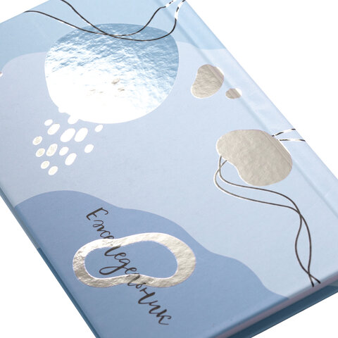 Внутренний блок содержит 64 листа офсетной бумаги белого цвета плотностью 65 г/м2. Твердая книжная обложка из переплетного картона с матовой ламинацией и выборочным лаком придаст индивидуальность и обеспечит долгий срок службы. Размер изделия - 165х90 мм.