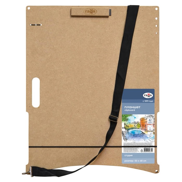 Планшет для пленэра МДФ А2, 530 х 680 мм, Гамма "Студия", магнитный зажим, с ремнём