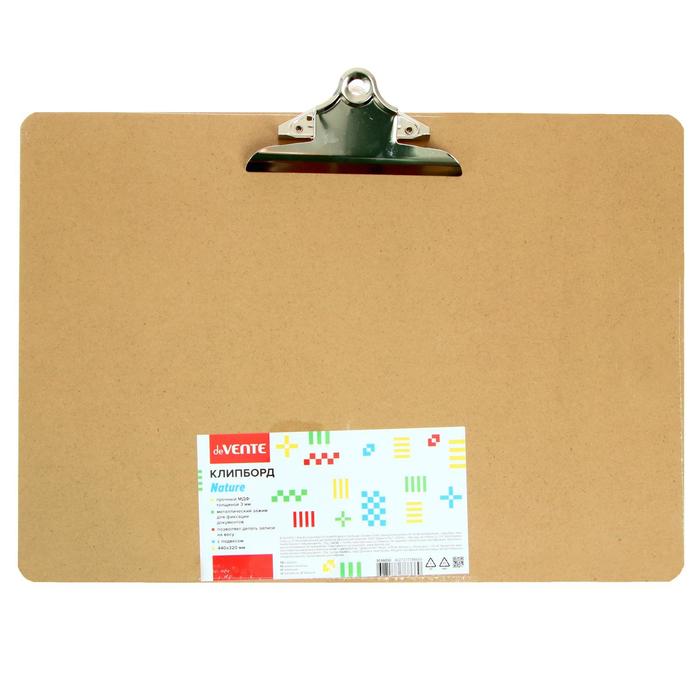 Планшет с зажимом A3 (440 x 320 мм) горизонтальная, МДФ толщиной 3 мм, без покрытия, усиленный прижим бабочка шириной 14,5 см, в пластиковом пакете, натуральный коричневый