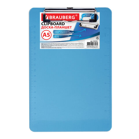 Доска-планшет BRAUBERG "Energy" с прижимом А4 (226х315 мм), пластик, 2 мм, СИНЯЯ, 232230