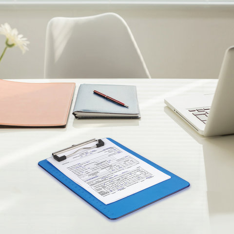 Доска-планшет формата А5 с верхним прижимом без крышки фиксирует до 90 листов. Изготовлена из жесткого пластика толщиной 2 мм, что позволяет комфортно делать записи на весу. Металлический прижим обеспечивает плотное прилегание документов, а выдвижной подвес позволяет разместить планшет на вертикальной поверхности.