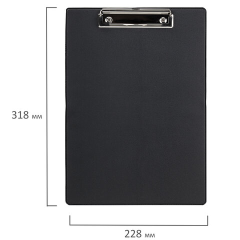 Доска-планшет формата А4 с верхним прижимом без крышки фиксирует до 90 листов. Изготовлена из плотного картона с покрытием из износоустойчивого ПВХ толщиной 2 мм, что позволяет комфортно делать записи на весу. Металлический прижим обеспечивает плотное прилегание документов, а выдвижной подвес позволяет разместить планшет на вертикальной поверхности.