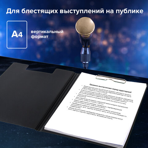 Папка-планшет BRAUBERG "Стандарт" используется для работы со счетами, накладными и другими документами. Незаменима при работе на складе, в магазине, при участии в конференциях, выставках и других публичных выступлениях.